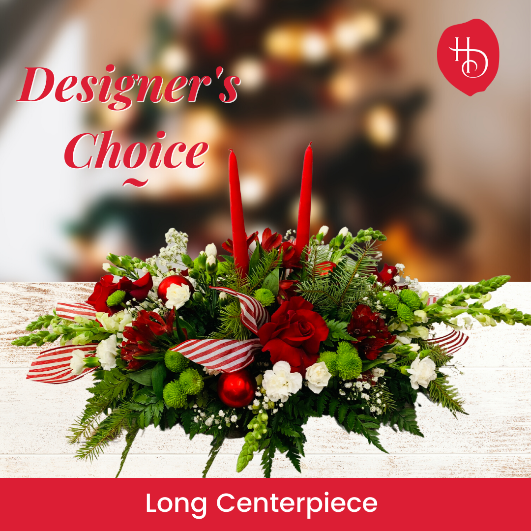 Gather around a centerpiece full of holiday decor and Christmas florals. Our designers will pick the best in bloom to arrange a centerpiece with the option to add one or two or three candles.
